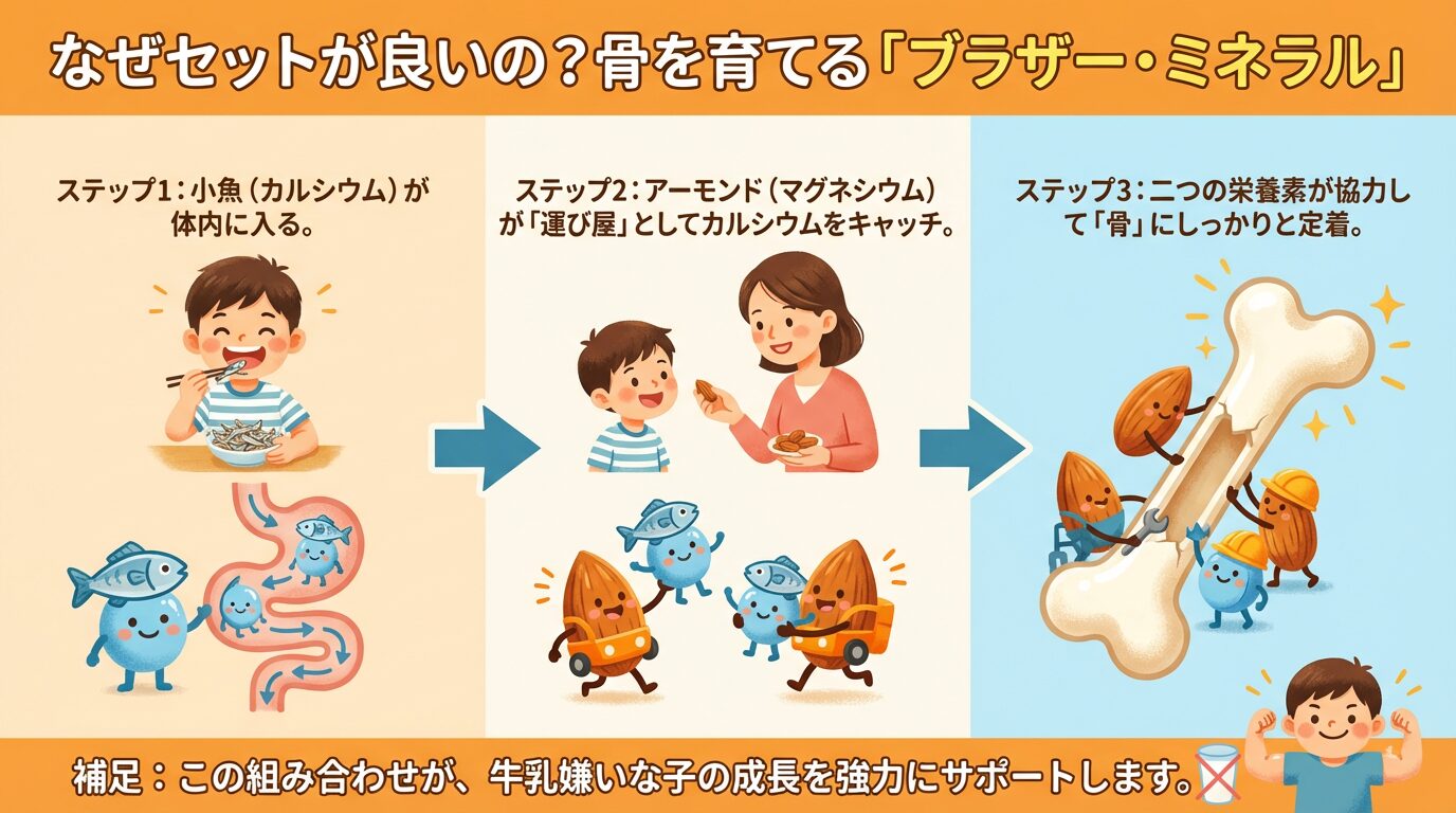 アーモンドフィッシュは、牛乳嫌いなお子さんを持つご家庭にとって、成長を支える「科学的なお守り」です。