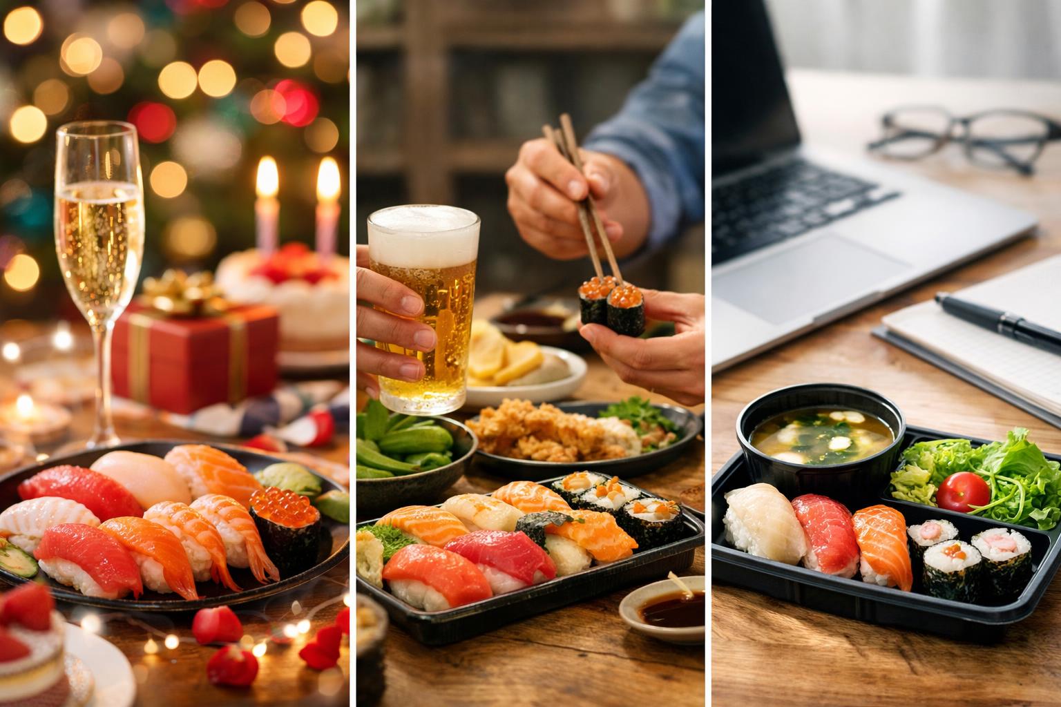 | 子どもの誕生日 | 軍艦・巻物・えびやサーモンが多めのファミリー向け盛り合わせを選び、わさび抜き指定で注文 | ポテトやから揚げなどのサイドメニューを追加してパーティ風に |