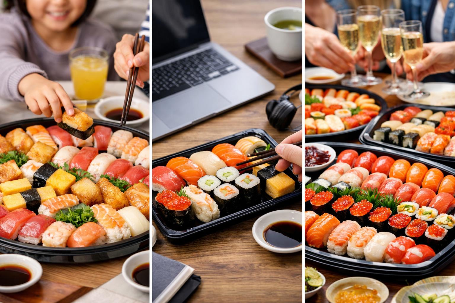 在宅での仕事や勉強の合間に食べるなら、一度に食べきれる軽めのセットや、巻物が多めのセットが向いています。手を汚しにくく、さっとつまめるサイズ感のものを選ぶと、作業の合間でも食べやすく、集中力もキープしやすくなります。