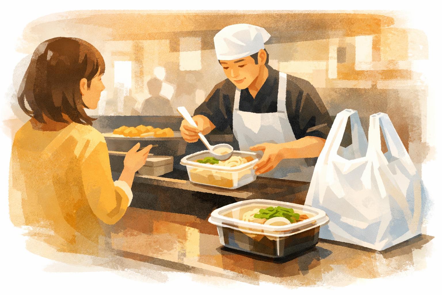 レジ袋の有料化以降、丸亀製麺でもテイクアウト時にレジ袋代が別途かかる店舗が多く、環境配慮の観点からマイバッグや保冷バッグの持参が推奨されています。特に、うどん弁当やうどん・丼を複数個まとめて持ち帰る場合は、底が広く安定したマイバッグがあると、容器を水平に保ちやすく、汁漏れ防止にも役立ちます。